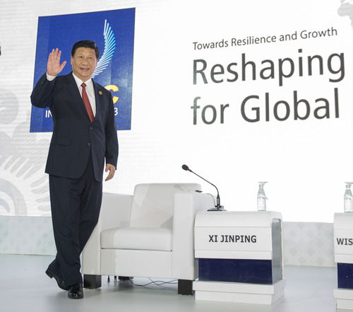 2013年10月7日,國家主席習近平在印度尼西亞巴厘島出席亞太經合組織工商領導人峰會,并發(fā)表《深化改革開放共創(chuàng)美好亞太》的重要演講。新華社記者 李學仁 攝