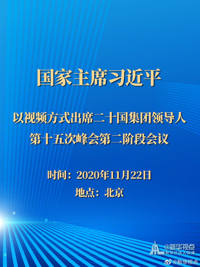 國家主席習(xí)近平11月22日晚在北京以視頻方式出席二十國集團(tuán)領(lǐng)導(dǎo)人第十五次峰會第二階段會議。 ???