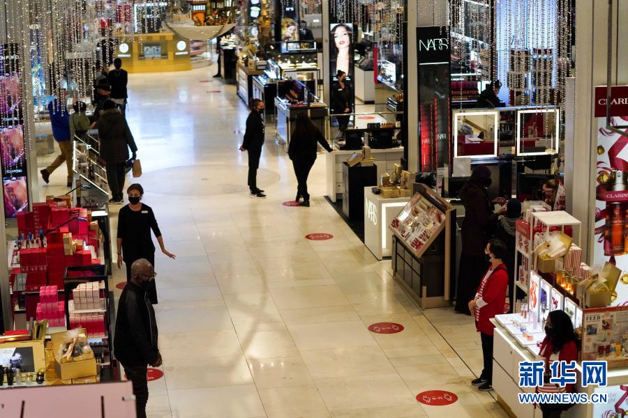 受新冠疫情影響,今年美國“黑色星期五”購物促銷日前往商店購物的人數(shù)較往年減少。