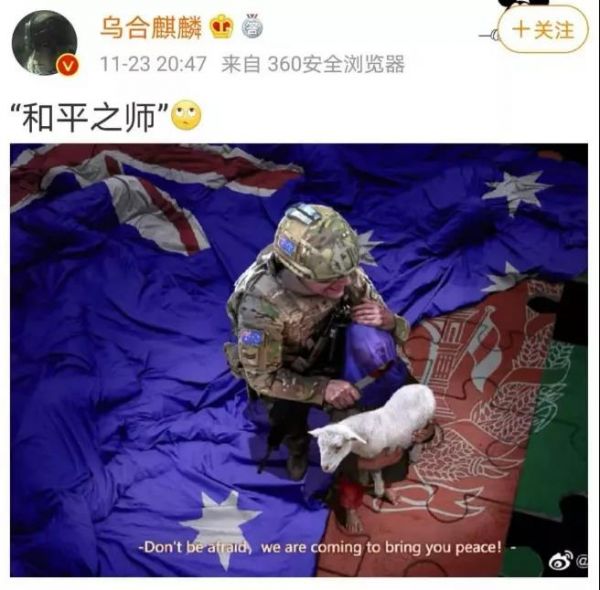 “莫里森的憤怒到底是什么?‘照片’?我想不是。真正令他惱怒的是,他認(rèn)為中國人無權(quán)對澳大利亞特種部隊在阿富汗的謀殺行為發(fā)表評論?!?/font>