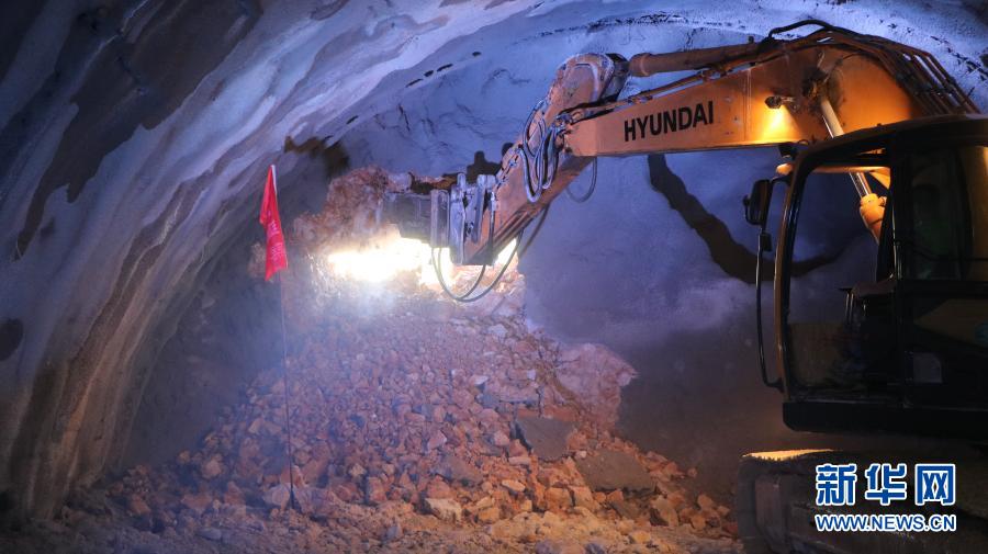 這是10月21日拍攝的中國建筑集團(tuán)承建的波黑泛歐5C走廊高速公路波契泰利隧道貫通瞬間。新華社發(fā)(中建公司供圖)