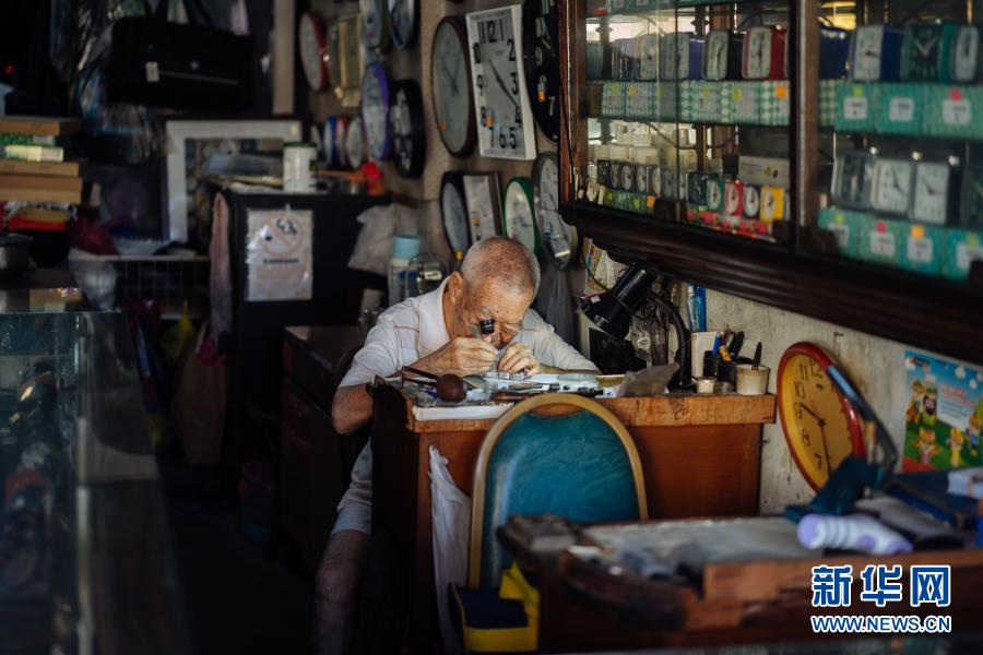 12月5日,在馬來西亞雪蘭莪州巴生的郁昌表行,韋華在維修手表。新華社記者 朱煒 攝