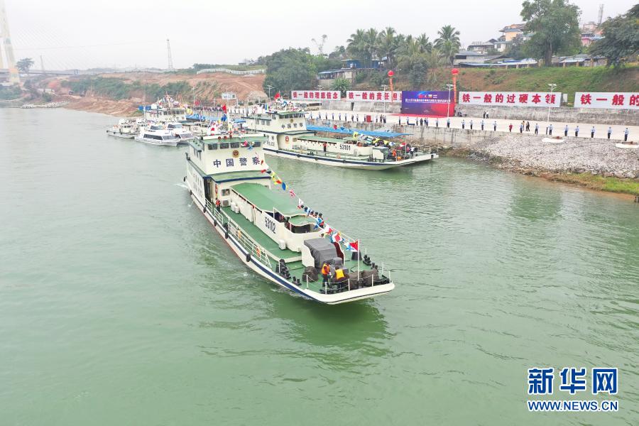 12月8日,參加第100次中老緬泰湄公河聯(lián)合巡邏執(zhí)法行動(dòng)的執(zhí)法艇啟航。新華社發(fā)(云南省公安廳水上巡邏總隊(duì)提供)