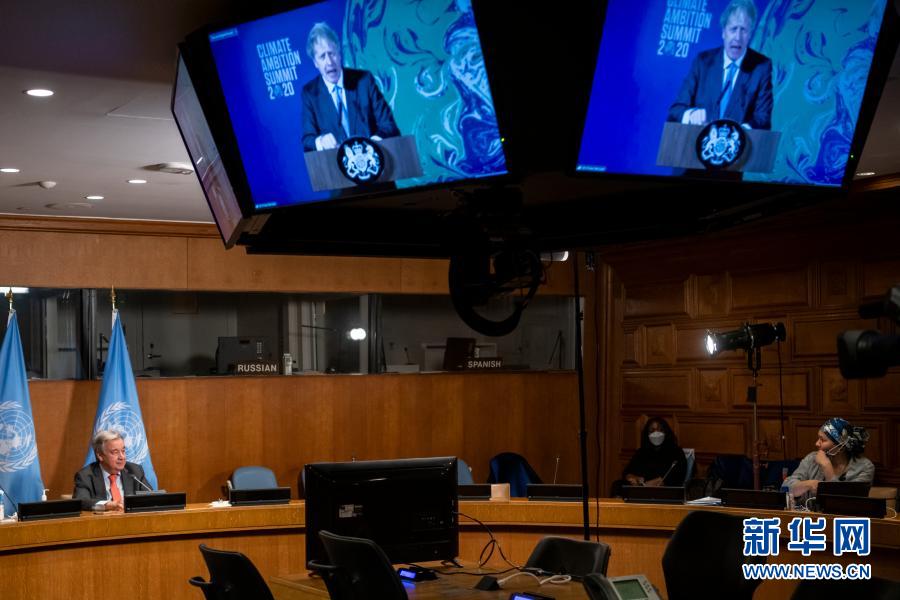 12月12日,在位于紐約的聯(lián)合國(guó)總部,聯(lián)合國(guó)秘書長(zhǎng)古特雷斯(左)出席氣候雄心峰會(huì)。聯(lián)合國(guó)秘書長(zhǎng)古特雷斯12日在氣候雄心峰會(huì)上致辭,呼吁全球進(jìn)入“氣候緊急狀態(tài)”。新華社發(fā)(聯(lián)合國(guó)供圖)
