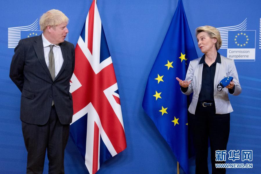 2020年12月9日,英國首相約翰遜(左)與歐盟委員會主席馮德萊恩抵達比利時布魯塞爾的歐盟總部,準備進行會晤。新華社發(fā)(歐盟供圖)
