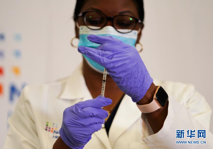 12月14日,在美國紐約長島猶太醫(yī)療中心,一名醫(yī)護(hù)人員為新冠疫苗接種作準(zhǔn)備。新華社記者王迎攝