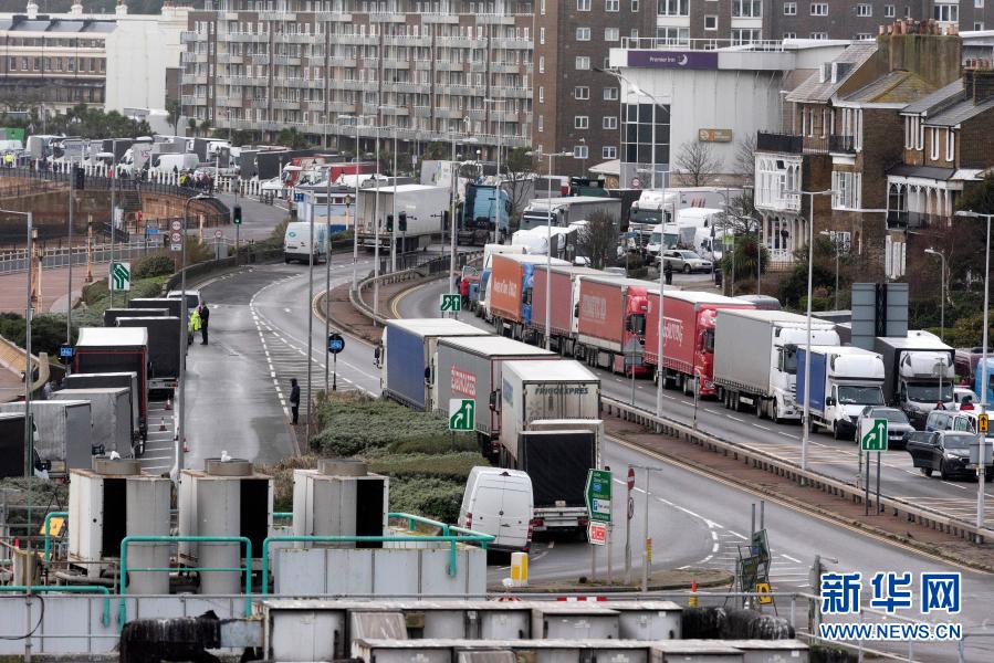 此前,為應(yīng)對英國近期出現(xiàn)的變異新冠病毒,法國宣布從當(dāng)?shù)貢r間20日午夜起48小時內(nèi)禁止來自英國的所有人員旅行,包括與公路、鐵路、航空、水路有關(guān)的貨運(yùn)人員旅行。這給英國與歐盟國家之間的貨物運(yùn)輸帶來極大影響。自邊境關(guān)閉以來,大約有2850輛卡車被困在英國肯特郡。