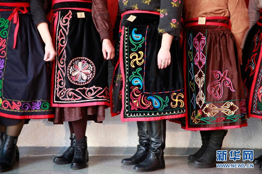 12月24日,在吉爾吉斯斯坦首都比什凱克,人們身著裙袍參加比賽。新華社發(fā)(羅曼 攝)