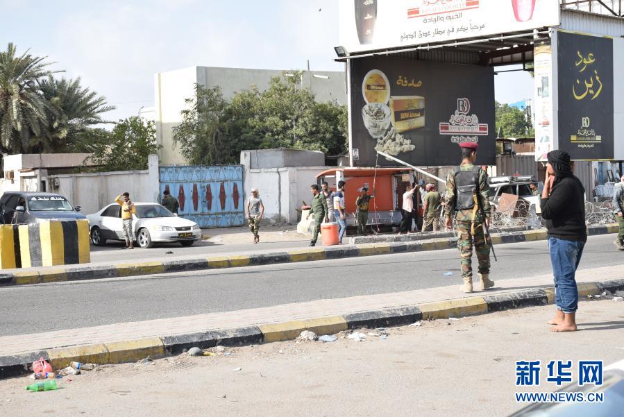 12月30日,在也門亞丁,政府軍士兵在爆炸后封鎖了亞丁國際機場的入口。新華社發(fā)(穆拉德·阿卜杜攝)