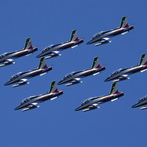 當(dāng)日,意大利“三色箭”飛行表演隊(duì)在意大利首都羅馬舉行飛行表演,慶祝意大利空軍建立98周年。