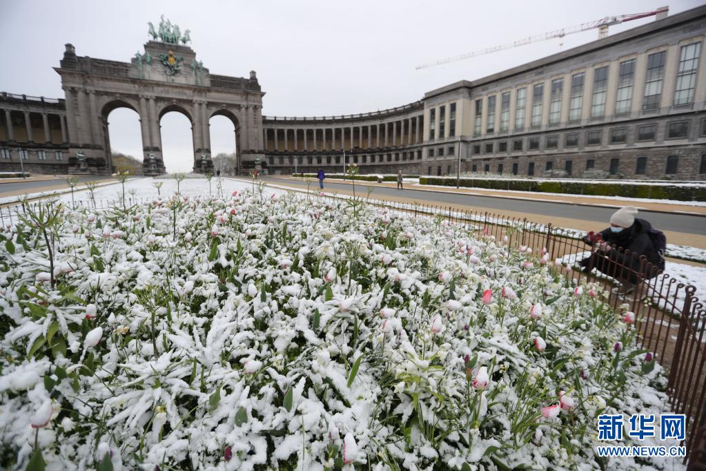 比利時(shí)近日迎來春雪,首都布魯塞爾銀裝素裹,景色別致。