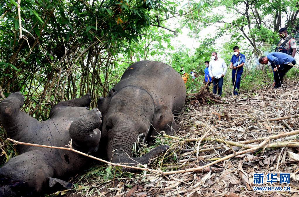 這是5月14日在印度阿薩姆邦納加奧恩地區(qū)拍攝的死去的象。