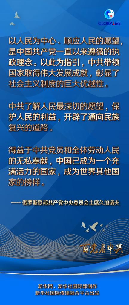 久加諾夫?qū)χ袊?guó)共產(chǎn)黨百年華誕表示祝賀?;仡櫚倌隁v程,他表示,中共了解人民最深切的愿望,保護(hù)人民的利益,開(kāi)辟了通向民族復(fù)興的道路。