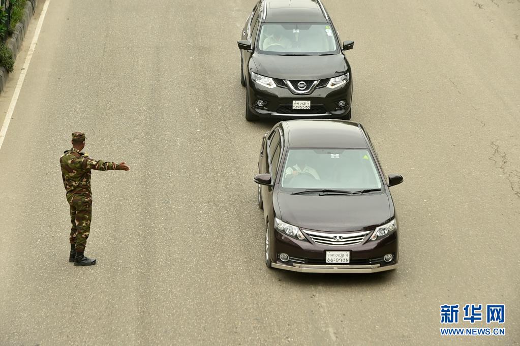 7月1日,軍人在孟加拉國達(dá)卡的街道上攔停過往車輛。