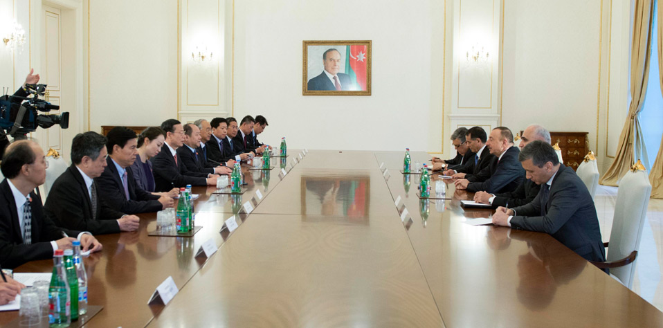 應(yīng)邀訪問阿塞拜疆的國務(wù)院副總理張高麗5月31日在巴庫會見阿塞拜疆總統(tǒng)阿利耶夫。